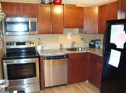 Fantastic Condo with three floors of living space. Many updates include beautiful new kitchen cabinets, countertops, appliances, laminate flooring, pantry. Large livingroom with new laminate flooring. Half bath with new vanity,toilet and flooring. Second floor newer carpet 2013(apo). Masterbedroom with lots of closets. Second bedroom carpet with cedar closet space. Amazing third floor completely finished walk out basement with carpet, tile, recessed lighting, closets galore, laundry area. This is move in condition all the work has been done! Must see! Make your appointment today!!