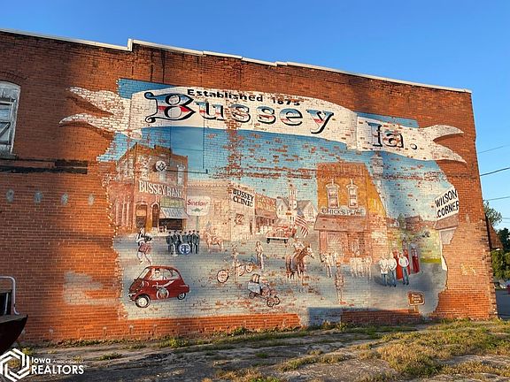 This two-story brick building located in Bussey, IA is dripping with history & charm, just waiting for the next owner to put their unique stamp on the property. Constructed in 1900 this 3,080 total square foot building features 2 levels of use with unlimited possibilities in the heart of Bussey, IA centrally located to Knoxville, Pella, Oskaloosa, Albia, & Chariton. Currently set up for a residential rental the main floor features a small kitchen, & everything needed to live, work & even create your own unique lifestyle in a quiet small-town setting. With a permit from Marion County the charming main floor could be used for business or commercial space. The incredible, one-of-a-kind, historically significant mural on the North side of the building displays a classic portrait of downtown displaying a moving scene from the rich history of Bussey. Buildings like this one rarely come for sale in rural areas that provide all of these possibilities. Call soon to schedule your tour!