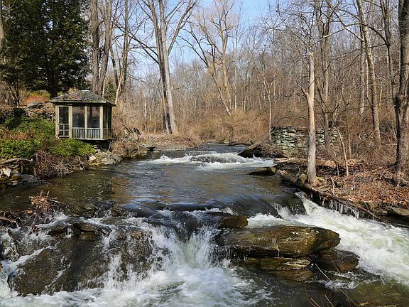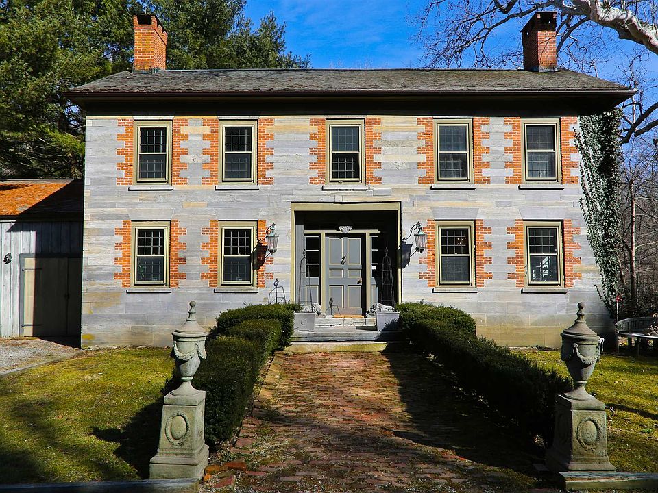 Classic Federal Style with Field, Stream & Guest Cottage - The Main House, built in 1795, is a distinguished and pure example of early American architecture. The untouched details of this 3 Bedroom, 3 Bathroom, 6 fireplace house includes a unique facade of Vermont marble, original hardware, hand painted interiors and indented interior window sills. The property boasts 39 acres of woods and field with the Webutuck Creek meandering throughout the property with over 4,000 ft of water frontage. The Guest House is a timber framed cabin with a large hearth, cathedral ceiling, Kitchen, Bathroom and a Sleeping Loft. EH3539