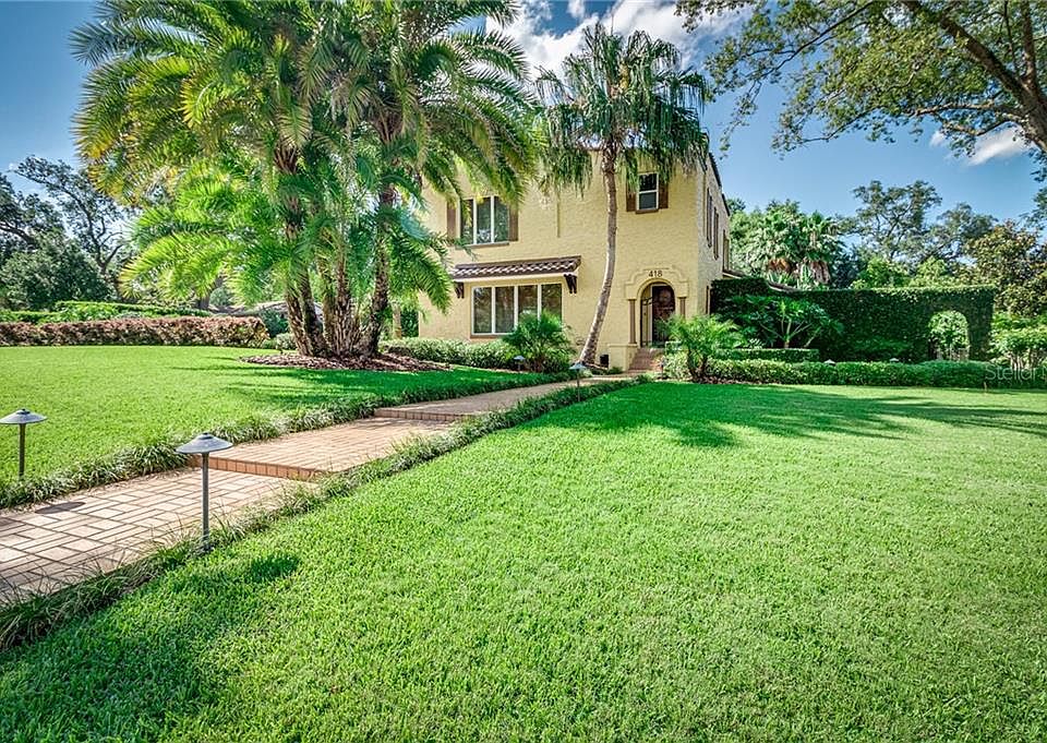 Beautifully maintained mediterranean-style pool home steps from Lake Hollingsworth on a double lot. This home has recently undergone major improvements including a new tile roof, new window screens and hardware, paint inside and out, and extensive landscaping. Rarely can you find both a large pool as well as a large yard so close to the lake with mature landscaping, a fenced yard and a fire pit. Interior features include a large kitchen with eat-in space, large downstairs interior laundry room with sink and multiple living and dining spaces, all of which are very flexible for personalized use. The kitchen is a chef's dream with a gas range, multiple ovens, ice maker, wine fridge and two sinks. Enjoy a meal at the breakfast table or island stools with wraparound kitchen windows to maximize backyard views of pool and the lush yard. Two upstairs bedrooms offer views of Lake Hollingsworth. In addition to the attached two-car garage, there is a parking pad large enough for three additional parking spaces. This home has it all!
