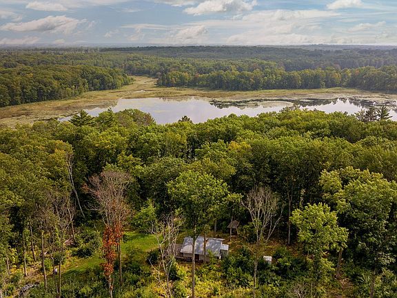 Here's a hard to find large, wooded acreage with a hunting cabin in a remote location that's accessible by pickup/SUV for 3 seasons. Acreage is mostly high & dry with mature woods, some selective harvesting at different intervals, lots of regrowth, cleared food plot areas, ATV trails, and plenty of wildlife! This property is adjacent to thousands of acres of public land and Goose Lake (duck pond). Sellers tell me, excellent duck hunting out of their blind just a short walk from the seasonal cabin. Cabin is wrapped in steel siding, has two bdrms filled with bunk frames, a living area, kitchen, and even has an indoor shower (water is heated with propane heater system). A wood stove keeps the place warm during cold deer hunting seasons. Cabin is wired for electricity provided by the generator (included). Generator also runs the pump on the 4" drilled well. Great meat pole and outhouse wrap up the necessities! Property is surrounded by miles of snowmobile and ATV trails! Please enjoy video