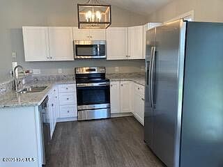 Beautiful 3 bedroom, 2 bath single family home located in West Bay Estates. The home has newer granite countertops, cabinets, appliances, fixtures and LVP flooring. Nice open floor plan, FP in living area, 2-car garage. Home has great fenced in back yard with gazebo and shed. HOA takes care of front and side yard.