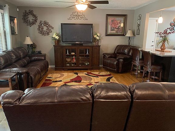 A MUST SEE - This move-in ready home has professional landscaping and an inviting front porch. Located in a desirable hilltop neighborhood, it is a short walk to Johnson Lake and a 5 minute cart ride to Sunrise Golf Course. The home is large enough for entertaining but does not require hours of upkeep so you will have time to walk, bike, fish, golf, or just relax on your porch. The kitchen has been recently updated with a large eat-in bar, new cabinets, counter tops, tile back splash and stainless steel appliances. The home has original wood floors and updated tile for a clean look and feel. The one-car garage is attached and has an epoxy floor and painted walls that match the interior. The yard is a manageable size and has been well maintained. The front yard has a beautiful tree and the gutters have Leaf Filter Gutter Protection so no need to get on the roof in the fall! The backyard fence is a combination of 8-foot wood panels and chain link so you can have privacy and still enjoy a nice breeze. The large storage shed, front porch furniture, window coverings and Ring doorbell are included. This home is not going to last so call 812-200-5373 to schedule your showing before it’s gone!