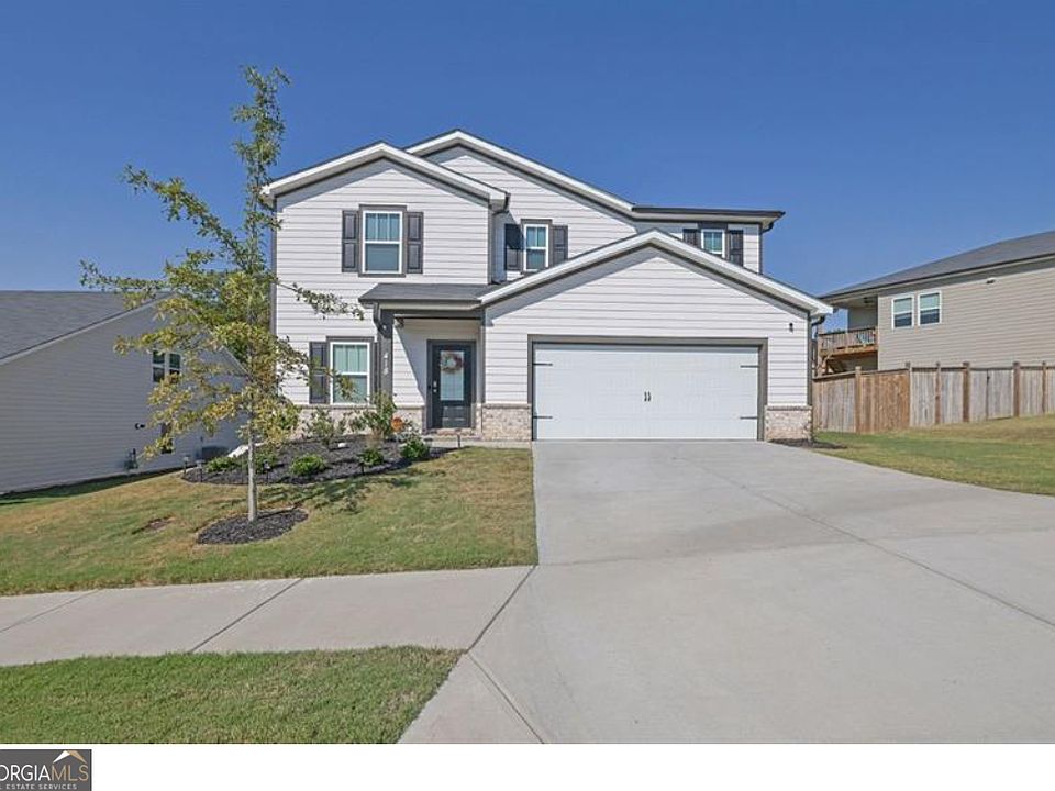 Welcome to this stunning, better-than-new Farmhouse-style beauty located in the highly coveted Towne Mill community! Built in late 2022, this gorgeous home offers over $25K in custom upgrades, making it truly one-of-a-kind. From the moment you step inside, you're greeted by beautiful LVP flooring that flows throughout the main level, including a large flex space/office perfect for working from home or transforming into a playroom. The heart of the home is the incredible kitchen, boasting a massive island, quartz countertops, and custom stainless steel appliances. Its open layout offers a perfect view into the family room, creating an ideal space for entertaining guests. Step outside into the spacious, fenced-in backyard, complete with a stunning pergola-perfect for enjoying your morning coffee or hosting family BBQs. The main level is completed with a half bath and a convenient mudroom featuring plenty of storage and hooks. Upstairs, the oversized master suite is a true retreat, with a large custom sitting area and beautiful built-ins. The spa-like master en suite offers dual vanities, granite counters, a separate shower, a relaxing soaking tub, and a large walk-in closet. You'll also find three additional bedrooms with LVP flooring and ample closet space, ideal for a growing family! Living in Towne Mill means enjoying incredible community amenities, including a pool, tennis courts, and a playground. Plus, you're just minutes from the new Cherokee High School and the Hickory Log Creek Reservoir, perfect for fishing enthusiasts. With blackout blinds installed on every window and a 1-year home warranty included, this house is truly TURN-KEY and ready for you to move in. Don't miss your chance to make this Dream home your REALITY-schedule your showing today! Seller is willing to contribute to buyers closing costs.