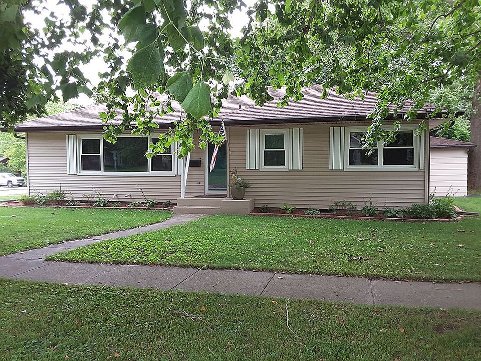 Beatifully remodeled ranch home. Easy walking distance to elementary school, city park and down town area. Quiet neighborhood with mature trees. Finished hardwood floors upper and new carpet lower. New hot water heater and newer heater and central air. Newer appliances.