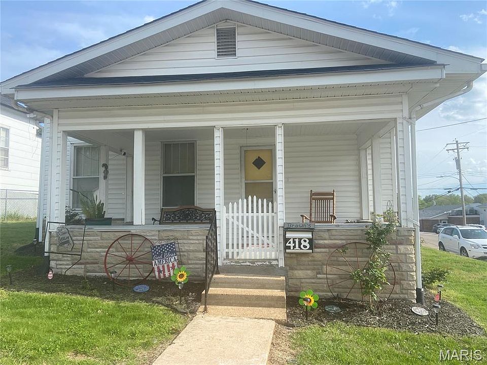 This Listing has the possibility of commercial zoning, presenting an excellent opportunity for first-time homebuyers or investors. Located in the heart of Festus, this two-bedroom, one-bathroom home is nestled within a top-rated public school district. The residence occupies a level corner lot, featuring an open floor plan suited for entertaining, accompanied by a detached garage and one-car covered carport. The expansive fenced backyard ensures privacy and a safe space for children and pets to play. The covered front porch offers a tranquil spot to unwind. This meticulously maintained home includes a spacious basement for storage and main floor laundry.