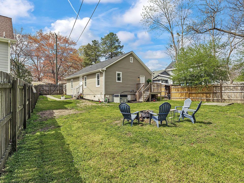 If you'd like to live a short stroll from charming downtown Wake Forest, with interior comforts AND a privacy fenced yard for frolicking or relaxing, then you MUST come see this adorable home! Don't pass by this gable-fronted gem, as the orientation may be deceiving from the road. It boasts a deep interior floor plan with ample natural light. The generous yard envelopes the home on 3 sides with a privacy fence, offers a fire pit area, and composite board deck--perfect for grilling or coffee sipping. NEW HVAC installed 2022 ( American Standard gas pack 2.0 ton 16 seer rating w/ smart Nest thermostat ), roof age 2022, new LVP flooring (2024). Granite countertops & stainless steel appliances in kitchen. Original structure built in 1946, but existing home has recent effective age and modern systems, including plumbing and windows. No HOA. This home has unbelievable value at a gorgeous price - we welcome your offer and wish you a happy spring in your new home!!