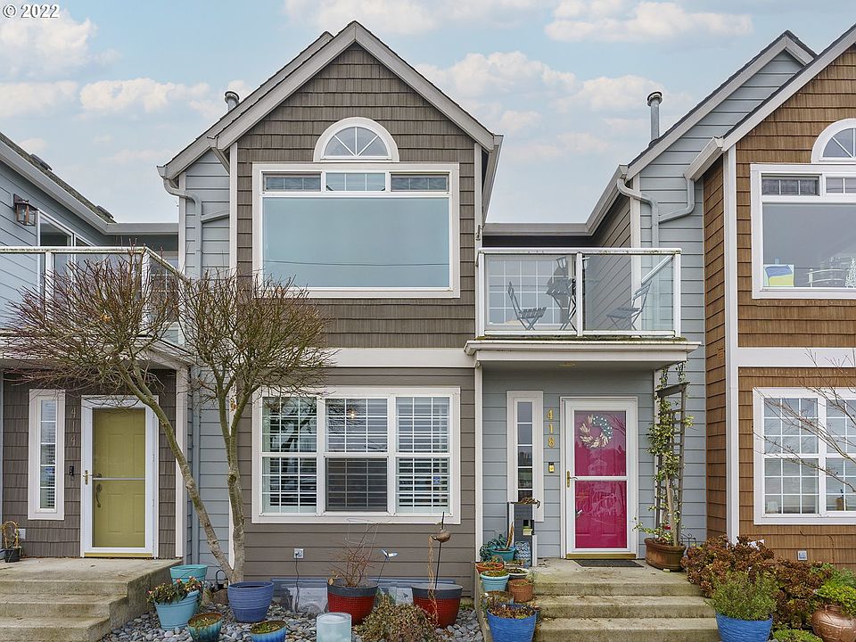 Dialed in Townhouse on Bridgeton Road with an awesome view of the Columbia River, Hayden Island and several Marinas. This home has the feel of a luxury resort, and it offers easy access to marinas and the Columbia river. The living room, dining room and kitchen and half bath were placed upstairs to appreciate the great light and view. The dual primary suites are on the main floor, and there is a full bathroom and non-conforming bedroom (or office) downstairs, laundry and 2 car garage. [Home Energy Score = 7. HES Report at https://rpt.greenbuildingregistry.com/hes/OR10004876]