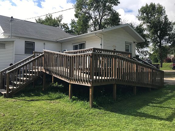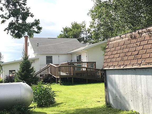 Priced to sell, this 1 1/2 story home is very spacious. It has a large kitchen, living room and main floor bedroom with full bathroom. The 2nd story has 2 bedrooms. Basement is partially finished with laundry, propane forced air, central air, bedroom and storage room. There is a separate entrance from the basement to the garage and a separate entrance from the bedroom to the garage. Wood fireplace, 1 stall attached garage, storage shed, corner lot, large wood deck, back entry, large yard. Lots of space!