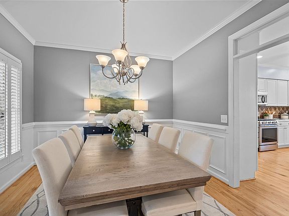 Backing to the 17th hole tee box, this southern charmer is ready for its new owner. The large front yard and sprawling front porch make for impressive curb appeal. Spend this winter by your family room fireplace. Formal dining room features wainscoting, crown molding and hardwoods. You will love the size of the kitchen and breakfast nook complete with center island offering additional seating, white cabinets, gas stove, tile backsplash. Primary bedroom is highlighted by two closets and large bath w/ corner garden tub and sep shower. Secondary bedrooms both have WIC. Large bonus room. Custom millwork, arched doorways, sunroom, fenced yard, side entry garage and so much more.
