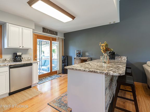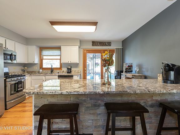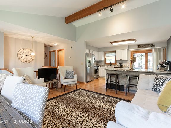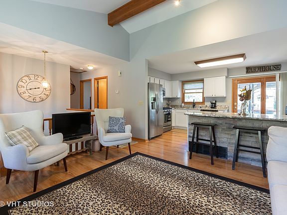 Gorgeous open concept & sunshine filled home located in a quiet neighborhood with great neighbors. Living/Dining Room has vaulted ceilings and Pergo floors, recessed lighting, oak trim and doors. You'll absolutely love this Kitchen with granite countertops, including a huge island, tons of stylish white cabinets, and newer SS appliances! The Deck off the kitchen will provide a nice place to put your feet up & relax (canopy on deck stays) deck stairs to the back yard make it easy to entertain inside & out. Fully fenced back yard with brick walkway to the front yard plus storage shed. Home features newer carpet throughout. First floor family room with recessed lighting, could be additional bedroom. Long Driveway easily houses 8 cars! Newer complete tear off roof, water heater, gas furnace & updated bath. This home is easily maintainable, totally move in ready & close to all the McHenry/Johnsburg shopping and the new Woodmans! The sellers hate to leave their home but life happens... Make this your new home today!