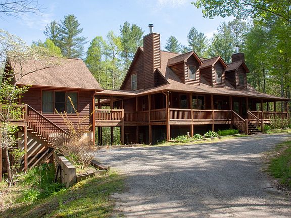 If you are looking for your Mountain Retreat or full time residence, look no further. This one has it all. Custom built in 2007 with wrap around porches, two fireplaces, hardwood floors throughout, the list goes on and on. Two story home on full unfinished basement with a detached guest cottage also on a full basement/workshop. Situated on private 2.76 acres in nice community with no HOA. Main house features Master Suite on Main equipped with a wood burning fireplace, two bedrooms with a reading loft up stairs. Kitchen with the amenities to delight a caterer. High end finishes everywhere.