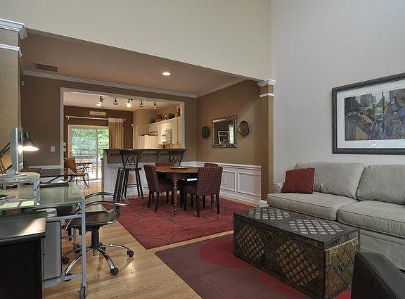 OPEN TO THE PUBLIC SUNDAY 7/21 2-4PM. Clean town home in quiet, gated community. Secluded and lush back yard setting with morning sun in the master bedroom. Easy interstate access. Landscaping maintenance included in rent. New hardwoods on main floor, updated lighting. End unit. New HVAC. Washer/Dryer included. Low maintenance, high value. Gas Fireplace. $40 nonrefundable application fee per applicant. (All photos are from a prior listing, some rooms have been painted/updated.)