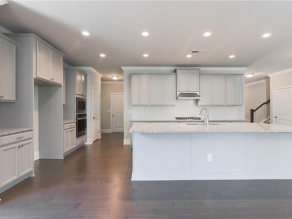 - Kitchen Features: Breakfast Bar, View to Family Room, Kitchen Island, Pantry Walk-In, Breakfast Room, Solid Surface Counters, Cabinets White
