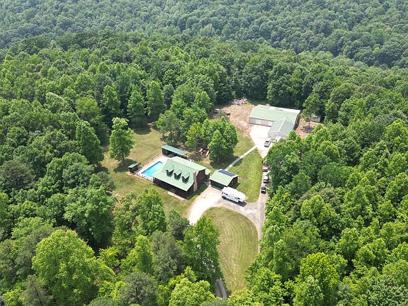 Land and home for sale in Scioto County Ohio. If you are looking for a very secluded home in this area or a high-end retreat/hunting camp, this is one you will want to see. Located on a private dead-end road sitting high away from everything, sits this stunning 1532 sq. ft. log home. Plenty of room for family and friends with 3 bedrooms 2 1/2 baths and an additional 4th bedroom and full bath in the finished lower level. 2 car detached insulated garage with propane wall heater. Picture yourself sitting on the large wrap-around front porch talking about the morning hunt while the kids are fishing in the almost 1-acre stocked pond, or swimming in the 18x36 ground saltwater pool. This property directly borders Shawnee State Forest which is over 60,000 acres.