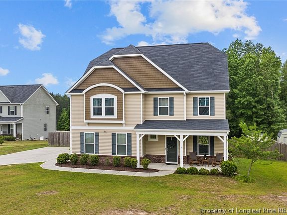 Welcome to your spacious retreat in the serene community of Steeplechase in Raeford! This expansive home offers over 2900 square feet of living space, situated on over an acre of land with no backyard neighbors, providing unparalleled privacy and tranquility. As you step onto the property, you'll be greeted by a beautifully wooded backyard, offering a peaceful oasis to relax and unwind with a backyard sunset. With no HOA restrictions, you have the freedom to personalize your space to suit your lifestyle. The backyard is complete with a chicken coop, a wired shed, fence, and a slab for your RV/Boat. Inside, you'll find ample living space spread across multiple levels. The third floor is finished, complete with a full bathroom and closet, perfect as an in-law suite, a home office, or a cozy retreat for guests. The home is conveniently located between Camp Mckall and Fort liberty and a short drive from Moore county with all of it’s elite amenities.