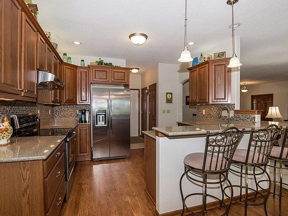 Impeccable, one owner, walk out ranch home perfectly situated in popular College Community Schools neighborhood! This home has all of the Bells and Whistles & was custom built w/ quality in mind. The kitchen is complete w/ Quartz counters, tiled backsplash, recently refinished hard wood flooring, S/S appliances, breakfast bar & pantry. Sizeable mud room on main level. 2 gas fireplaces: main level great room & lower level family room. Master en suite has Jacuzzi tub, walk in separated shower, tile flooring & dual sinks. All bedrooms are oversized. Large private patio off of the family room sliders & walk down deck. The garage is also extra large to fit all of your toys & contains 2 floor drains, & hot & cold water. Other extras include: shop in lower level, new carpeting on main level, sprinkler system, central vac, wired for sound system, water softener (owned), & radon is mitigated. A must see home, call today!