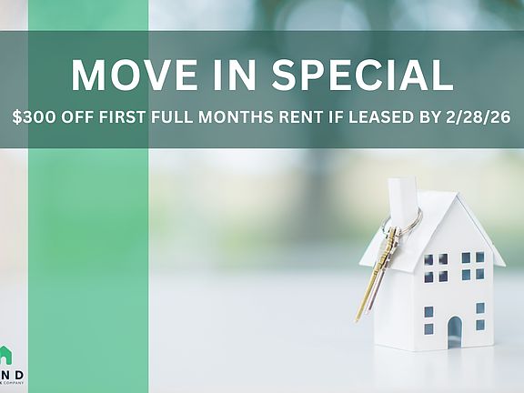 - Special offer! **MOVE-IN SPECIAL! $300 OFF THE FIRST FULL MONTH'S RENT IF LEASED BY 2/28/2026**