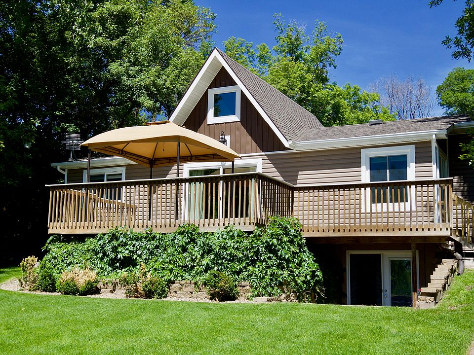 Rare opportunity to enjoy the Missouri River in your backyard with this updated 4 bedroom, 2 bathroom home with easy access to all parts of Bismarck. The main floor includes an updated kitchen with stainless steel appliances, pull-out drawers, and views of the river though the dining area's windows. The living room with hardwood flooring and surround sound speakers has direct access to the backyard deck. The 2 main floor bedrooms have been recently painted and the main floor bathroom has a custom tiled shower. The loft area has space for an additional bedroom area. The lower level with walk-out patio includes the family room, bedroom, bathroom with large tub, and laundry area. The attached 2 stall garage is heated, cooled and has direct access to the backyard through the patio door. Additional storage space in the boathouse with overhead door and workbench areas. Located on a recreation trail and close to the Dakota Zoo. Property information per city, buyer and buyer's agent to verify.