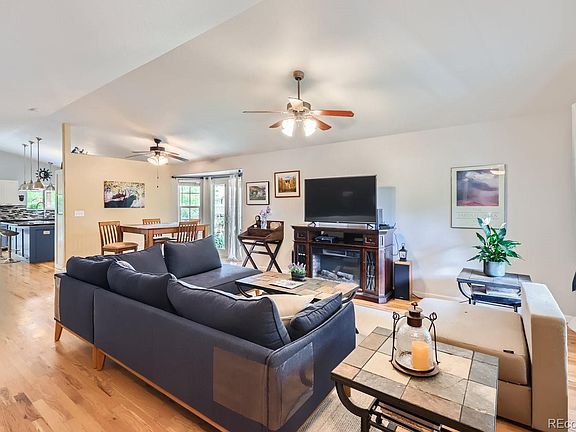 Enter house through covered front porch. Extensive hardwood floors throughout living room, dining room, kitchen and kitchen eating space. Dining room exits to private patio and wrap around deck to front and back patios. Kitchen has plentiful cabinets, stainless steel appliances and island with pendant lighting. Kitchen eating area exits to back patio which is totally private due to landscaped hedges. Custom pergolas add dimension, character and privacy to backyard living. Raised gardens. Shed in back.