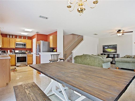 Welcome to your slice of paradise!!! This home will not last and is a must see at this price! Beautiful home with 3 spacious bedrooms and 2 and ½ baths with an open concept where the kitchen, dining and living room are perfect for family gatherings or entertaining. The kitchen boasts ample storage and pantry. The master and 2 additional bedrooms are on the second floor with a spacious loft for just hanging out and having fun. Enjoy a quite walk in the neighborhood or a quick trip to any of the many theme parks it the Orlando area. This home has an incredibly low HOA $99.12 per quarter and comes with a 1 year HOME WARRANTY. This home is a dream come true and a must show!!!