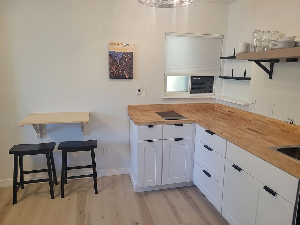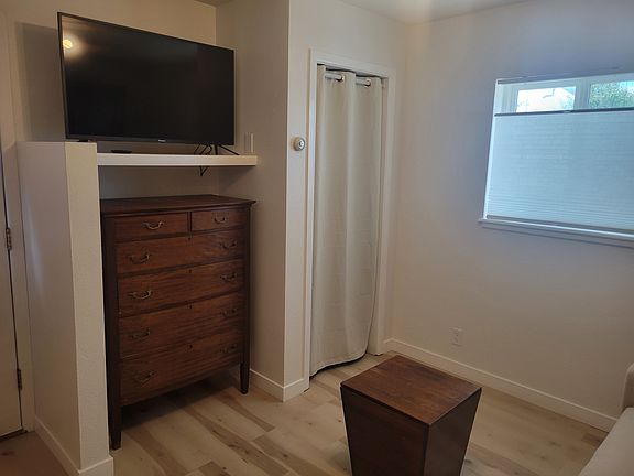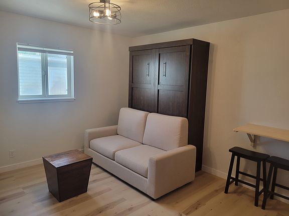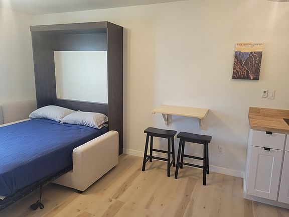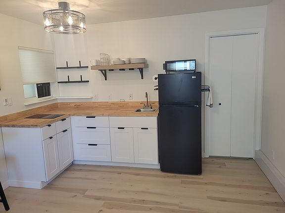 This is a fully furnished studio apartment with all utilities (including internet) included. While small, it has been recently remodeled and everything is included--a murphy bed and couch, small closet, dresser and tv, a fully stocked kitchen (dishes, cookware, etc) with stove top induction cooking and a toaster over, a bathroom with shower. The unit has a dedicated parking spot and a small fenced yard. The apartment is on the back side of a house which is rented on a short/medium term basis so note there is the possibility of some noise through the adjoining walls. The units also share a hot water heater, but the apartment has it own baseboard heat/thermostat and portable AC unit. A dog is allowed so long as it doesn't bark and disturb tenants in the other part of the house. Any length lease is permissible; tenant is welcome to try out the unit for a month to see if it's a good fit. Tenant is responsible for snow removal from the unit to the parking spot, if desired. Lawn care is provided by landlord. No smoking on the property.