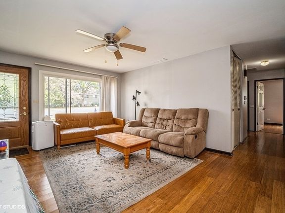 Great value in a great location. Many recent updates newer roof, kitchen and baths, flooring and more. Ceiling fans throughout. Large fenced yard. Extra wide driveway allows for three cars to be parked across at the same time. Excellent schools. Close to shopping entertainment, golf course and expressways.