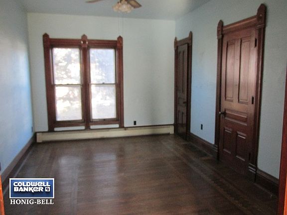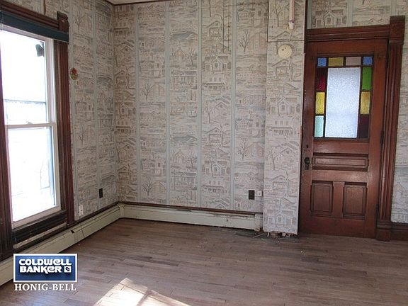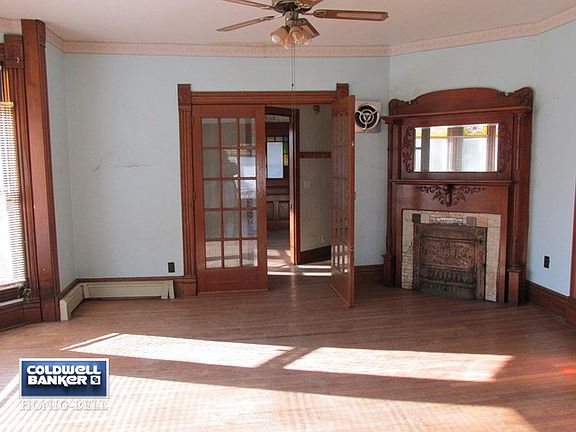 Two story five bedroom, 2 bath home on corner lot. Natural woodwork and hardwood floors throughout. large front porch. Detached garage. All dimensions are approximate.