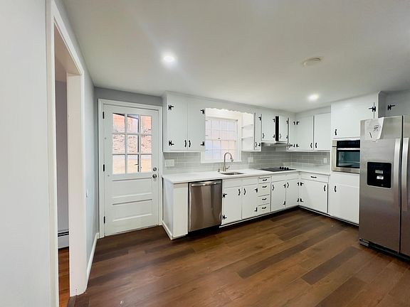 Remodel to perfection. This spacious and cozy single-family home is located at 418 S. Main St, West Hartford, just minutes away from Blue Back Square. Move-in ready, the home features three bedrooms and two bathrooms. The kitchen has white wooden cabinets, new white quartz countertops, subway tile backsplash and stainless appliances. Conveniently right off the kitchen, you will find a large and sunny living room with a fireplace, perfect for hosting family gatherings. The lower level is finished and can be used for an additional space for recreation or bedroom includes a washer/dryer. Outside you will find a one car garage! Requirements: Credit score of 660 and security deposit of 2 months rent ($7000). Owner pays for lawn maintenance and water bill. Renter is responsible for heat (oil), electricity, and snow removal. If applicable, monthly pet fee of $100.