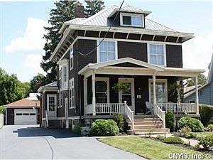Stately Colonial with character and charm. Oak woodwork throughout, hardwoods, stained glass window in foyer, four bedrooms, den, formal diningroom, third floor bonus room, open front porch, large deck, central air, fenced yard. Walk to park, grocery store and village conveniences. Shows wonderfully.