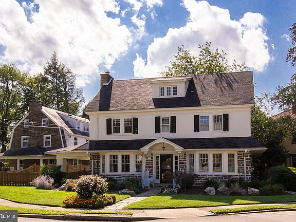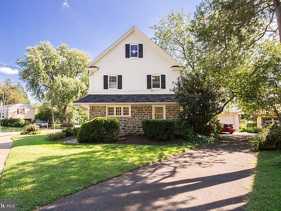 Your dream, Elkins Park center hall ,stone colonial, located on a large sunny corner lot awaits. Classic architectural details pile on the curb appeal while the charming covered entry beckons you inside. The inviting foyer frames entries to the living room, dining room, and center hall to the kitchen and back door. Hardwood floors are under foot and lead into the cozy living room with working fireplace, tasteful built in cabinets, with access to the side yard and covered porch. Large windows stream in light from the front exposure as well as the glass paneled porch doors. Across the hall is the large dining room with two large windows with extra deep sills. The connected kitchen is situated to be convenient and with the type of flow that begs to be used for entertaining guests. The entire kitchen was recently remodeled with stainless appliances, custom cabinetry, and marble counter tops. Plenty of clever design choices were made to make sure it is as functional as it is aesthetic. Downstairs a finished basement with powder room is a perfect playroom for kids or adults and features a half bath and a large, adjacent, unfinished area for storage. A large Bilco door could even be configured for a separate entryway. Heading upstairs you pass a large set of windows flooding the stairs with light on your way to the second floor consisting of three bedrooms, including a master suite with attached master bath, two additional bedrooms and a cheery hall bath. The third floor, houses still two more ample bedrooms as well as it's own hall bath with claw foot tub. Beyond the grassy back yard is the garage and shared driveway and offers even more space for storage, cars, a work area, or whatever your heart desires. This home has been loved and well maintained and will provide years of pleasant enjoyment for it's new owners.