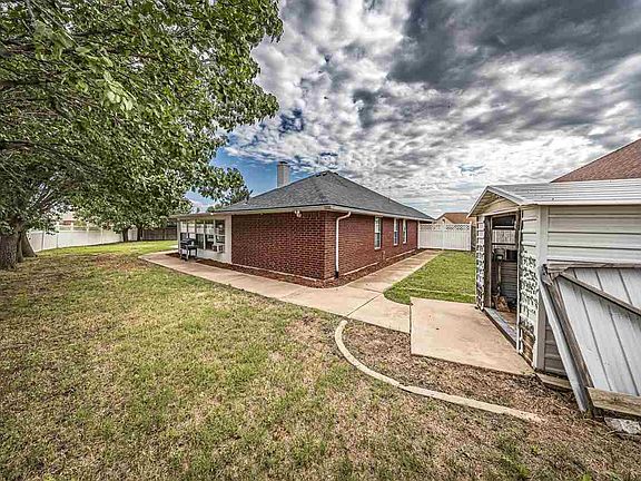 For more information about this home call Real Estate Experts LLC at 580-248-2600 or visit staceandreedy.com. This home offers a flexible floor plan that could be 3 bedrooms with an office or 4 bedrooms with 2 living spaces. It has a large open floor plan with high ceilings in the great room and a pellet fireplace and is open to the dining room and kitchen. The kitchen is spacious with granite countertops, high vaulted ceiling and lots of counter space and cabinetry. There is also a huge, converted sunroom that is perfect for a home gym or game room. The primary suite is a grand size and the ensuite bathroom is handicap accessible with a big walk in closet. All secondary rooms are oversized as well. The backyard has vinyl fencing lined with trees, storage shed and no neighbors behind. Did I mention this home is in a cul-de-sac too? Call for your private tour.