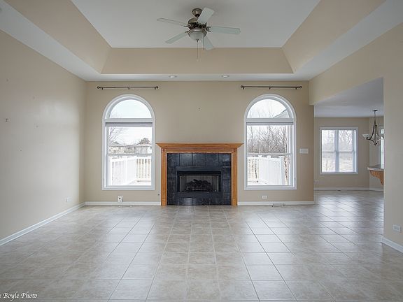 SPACIOUS, ALL BRICK, OPEN CONCEPT, AND WELL-MAINTAINED. Don't miss out on the wonderful home! Front entry foyer to open concept living with dramatic high ceilings and palladium windows. Large formal dining with pillar accent to define the room. Spacious great room has center wall remote start gas fireplace with palladium windows on each side, tray ceiling with light fan,and Bose speakers. Roomy kitchen with large dining area has many cabinets, snack bar, hall pantry, all appliances, and entry door to maintenance free deck and backyard. Master bedrm has tray ceiling w/light fan.