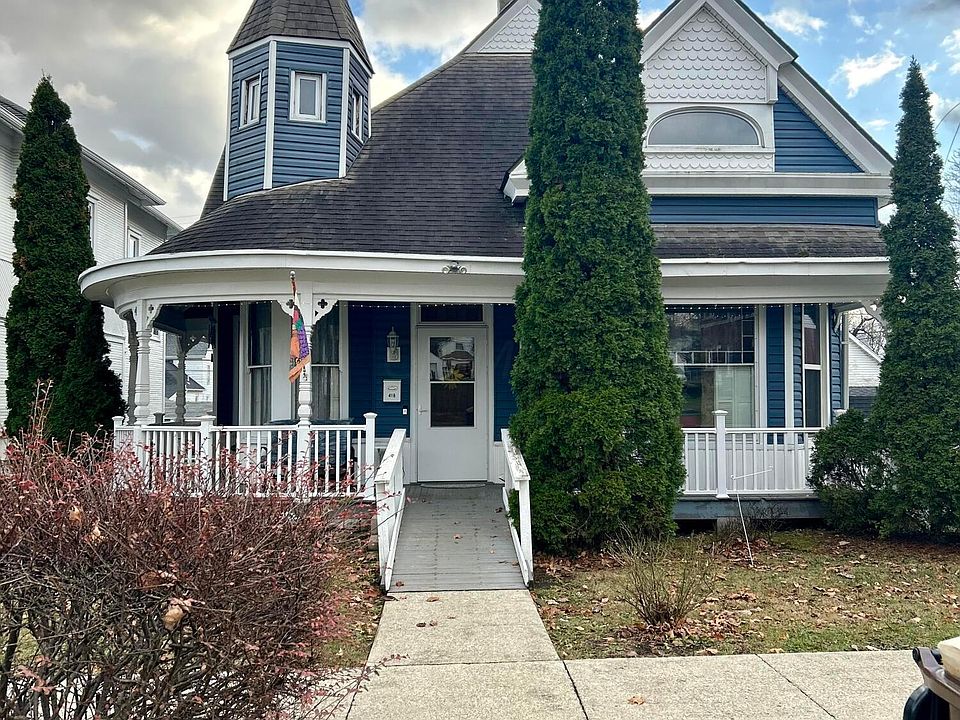 This is a must see. This Victorian style home has 5 bedrooms and 2 bathrooms. UPDATES all throughout the house! New kitchen, dining room, and upstairs flooring! New windows, updated electric, and new siding. Beautiful 10ft ceilings throughout this home. The eight-person hot tub stays, as well as the gazebo, and the THREE SHEDS! Fenced in backyard. Street parking but a new driveway on the side of the house! Side stairs on side of home, upstairs could be a rental! Do not miss out on this unique house!