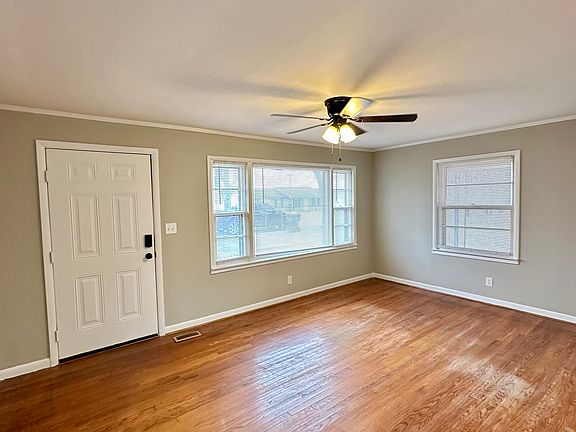 Fresh paint throughout. New LED light fixtures. LVP flooring and hardwood. Convenient in town location. Large backyard with storage shed. One year lease agreement. Tenant responsible for utilities and lawn maintenance. No Smoking.