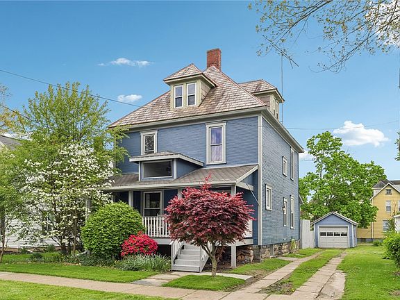 This well-maintained three-story home with 4-5 spacious bedrooms and 2.5 bathrooms offers the perfect blend of classic character and modern convenience. Step inside to admire the stunning original woodwork and two sets of elegant pocket doors that add warmth and charm throughout the main living spaces. The updated main level features a convenient laundry room complete with a custom dog wash. The kitchen flows seamlessly into the dining area, creating an inviting atmosphere. Upstairs, you'll find generously sized bedrooms and a flexible third floor that can be used as a fifth bedroom, office, or bonus space. The finished basement includes a second full bath, providing extra comfort and functionality. Stay comfortable year-round with a four-year-old furnace and central air conditioning system. Outside, enjoy a one-car detached garage and an additional five off-street parking spaces—rare in this location. This home offers charm, space, and convenience. Don’t miss this one!