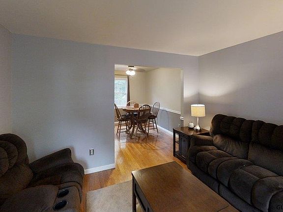 Well maintained house with freshly painted kitchen with tile floors, stainless steel appliances, new garbage disposal and new range with oven. Hardwood floors in living room and dining room. Wall to wall carpeting on stairs, upstairs hallway and all bedrooms. Freshly painted finished basement with chalk board wall. Sliding glass door to large deck and huge fenced in backyard. Public water and sewer