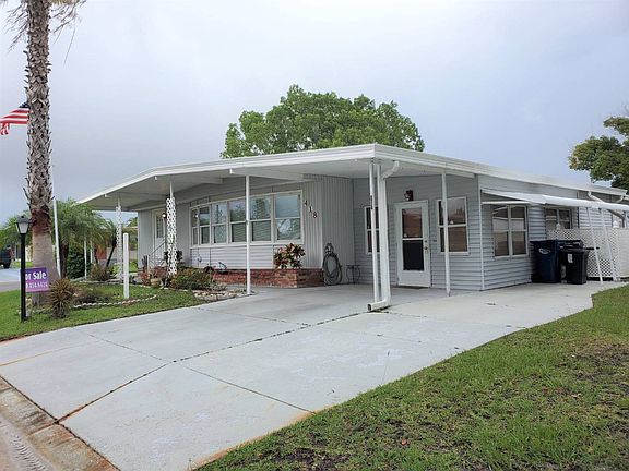 Just Listed $60,000 Turnkey This large home comes turnkey and sits on a corner lot with beautiful curb appeal. Extended side driveway, carport, enclosed side patio and storage shed. The storage shed is spacious and hosts the washer and dryer. Stepping inside from the side enclosed patio area you enter the kitchen. The kitchen has nice white cabinets, double sided sink, and a built-in breakfast bar area. Dining room and living room are large and open with laminate flooring. The front 6 windows give these rooms nice natural lighting. The living room opens up to the side enclosed Florida room. This room could be used as a second living room, craft room, office or a man cave. Make it your own, plenty of room to do whatever you want. The guest bathroom has a tiled tub/shower combo with a sliding glass door. Nice vanity with white cabinets and drawers giving you extra storage. Guest bedroom is spacious with a step-in closet. Master bedroom is roomy and accommodates a queen-sized bed, nightstands and dressers comfortably. The Ensuite bathroom has a nice sized dressing area, a walk-in closet, linen closet and a step-in shower. The home has all new windows throughout except the lanai. The roof was new April 2016 with a 20-year guarantee. The AC is only 5 years old. If you are looking for a move-in ready home with plenty of room to entertain your guests...look no further!! Call today to make this your Florida Dream Home. ACT FAST & CALL TODAY!! Don't forget to ask about the FINANCING available on this home. Colony Cove is an age qualified (55+) five-star resort community of manufactured / mobile homes. The "Cove" boasts 5 clubhouses, 5 heated pools, a riverfront pavilion and private fishing pier, a private marina, a fenced dog park (very pet friendly), tennis, shuffleboard, new pickleball courts, 2 new fitness rooms, 24-hour patrol, clubs for every interest, and much more. There are daily planned activities throughout the park. Bottom line, if you get bored here, it's your own fault!! The lot rent in Colony Cove is based on the homes' location. While the monthly rent may not be the lowest around, it's by far the best value for the money. Not only does the monthly rent cover all of the amenities of the community listed above, it also covers almost all other monthly expenses such as; water, sewer, trash pickup, all property taxes, lawn maintenance. . .pretty much every monthly expense except electricity and internet. The current lot rent on this home is estimated at $918.49 per month. All listing information given to us is considered appropriate and reliable but always recommend Home Inspections by independent companies who have a background and thorough understanding of manufactured homes. We cannot guarantee the accuracy of information given to us or the condition of the home. Lot rents are determined by the community office not our company.