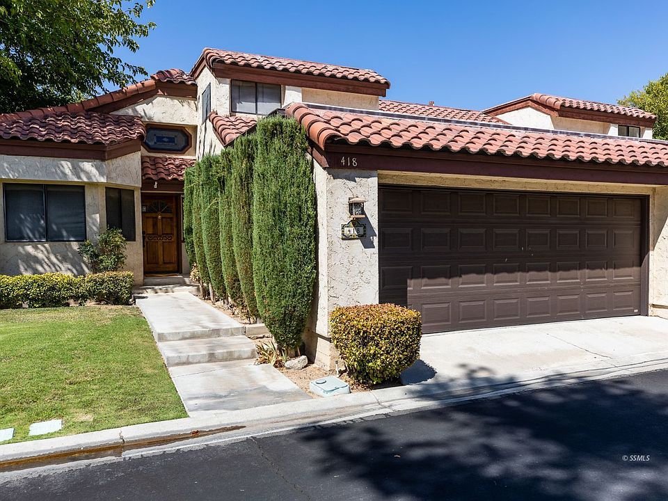 This gorgeous townhome has been beautifully updated. 4 bedroom 3 bathrooms. The home features two bedroom suites, one downstairs and one upstairs. Beautiful updated fireplace in the living room and french doors out to the back patio. Updated LVP flooring. The kitchen has been remodeled with white cabinetry, stainless steel appliances and quartz countertops. The downstairs hall bathroom has an updated tub and tile shower surround, tile flooring and vanity. The downstairs suite is nicely sized and has a private bathroom with tile flooring and a walk-in tiled shower. Inside laundry room with tile flooring and updated white cabinetry and mud sink. The two guest bedrooms are downstairs, one has a closet. The second suite is upstairs and spacious. The upstairs suite's bathroom has a dual sink vanity, tile flooring, tub with a tile shower surround and a large walk-in closet. The backyard has a covered patio and room for greenery! There is also a gate to the visitor parking and lawn. Come take a look!