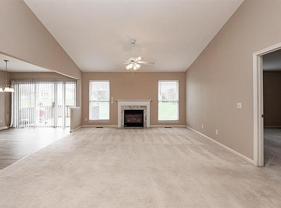 Very desirable 3 bedroom 3 bathroom villa in O Fallon. Vaulted ceilings in great room with fireplace. New vinyl plank flooring in kitchen and breakfast room. New light fixtures on main floor. Main floor laundry. Refinished kitchen cabinets. Fresh paint. Master bedroom suite with walk in closet, ceiling fan, and full bathroom. Spacious 2nd bedroom on the main floor. Neat and clean 2nd full bathroom in hall. Deck space off the breakfast room. Nice sized 2 car garage with level driveway. Finished walkout lower level with huge family room/recreation room area, and 3rd bedroom, 3rd full bath room in lower level. Bonus storage utility space. New roof only approx 2 months old! Excellent villa community with reasonable monthly HOA fee of $190 that covers many amenities, and exterior maintenance items.