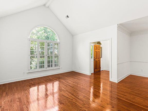 Premier location in the complex! Very private covered front porch with lots of green space. Completely painted! Large bay window in living room vaulted ceiling. Fireplace flanked with cabinetry. 3 beds down, upstairs Rec. Eat-in kitchen. 2 car garage and patio! Plantation Shutters throughout.