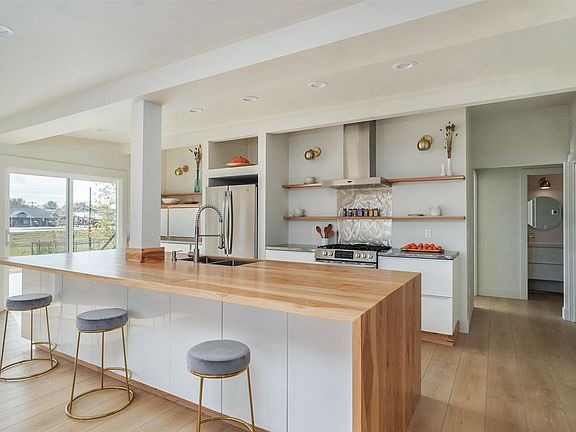 Spectacular Mid-Century Modern! Totally remodeled, this amazing home is an entertainer's dream! As you move into the heart of the home you experience the open concept floor plan. Large living room with built-ins. The kitchen is a chef's dream! Modern cabinets with custom hickory & stainless steel counters, butler's pantry, large eating bar, appliance garage & all new appliances. The dining is a wonderful space open to the kitchen and so perfect for gathering with friends and family. As you make your way down the hallway there are 3 spacious bedrooms and 2.5 baths that have been tastefully updated. The master suite has it's own private composite deck. The mater bath features double sinks & a beautiful, large walk-in shower with double shower heads. No expense was spared in this total remodel! New wiring, plumbing, spray foam insulation, energy star-rated roof, high end LEED certified LVP flooring throughout, new windows & doors. You will love outdoor entertaining with several areas to enjoy! Large composite deck with room for relaxing or hosting friends & family. Sitting on approximately an acre corner lot with trees, lots of room for volleyball, games or a fire pit. So cozy, yet so upscale. This home is such a privilege just to view, can you imagine what it would be like to own it!