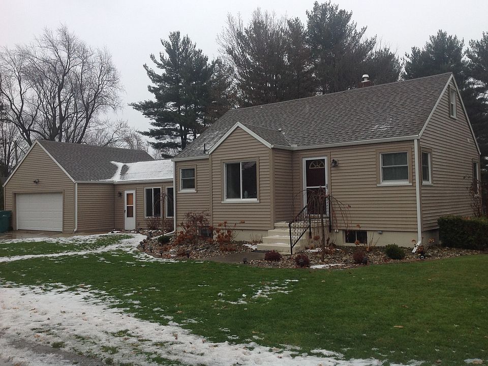 Charming 1 1/2 story in downtown New Carlisle on .73 (2 lots). House was remodeled in 2012. Brand new kitchen, windows, roof, and siding. Nice open floor plan with hardwood floors throughout most of the house. 2 bedrooms and full bathroom on main floor. Upstairs has 3/4 bath (shower, sink and toilet) and completely finished where 3rd bedroom could be. Full unfinished basement. Beautiful enclosed breezeway is all wood. Breezeway exits to large fenced in yard and extra additional lot. 2 car attached garage. Nice location near a park, school, and library. House has gas furnace and central air conditioning.