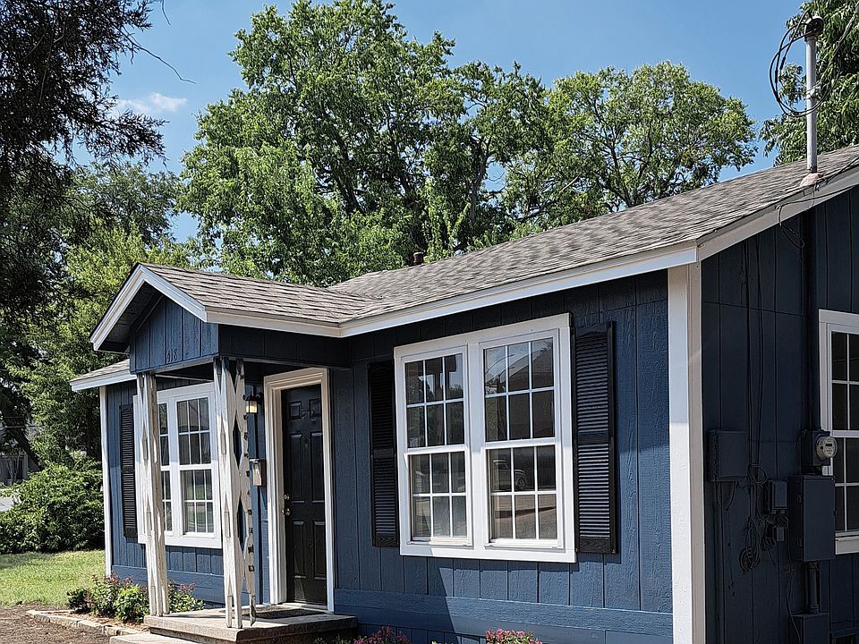 Vaulted ceilings, wood floors, storage room, Recently painted,inside and out. Wood floors, big fenced yard, laundry room, granite tops , gas stove, refrigerator and dishwasher, walk to Downtownsquare- available 11-15-2025