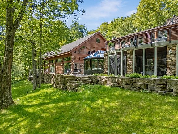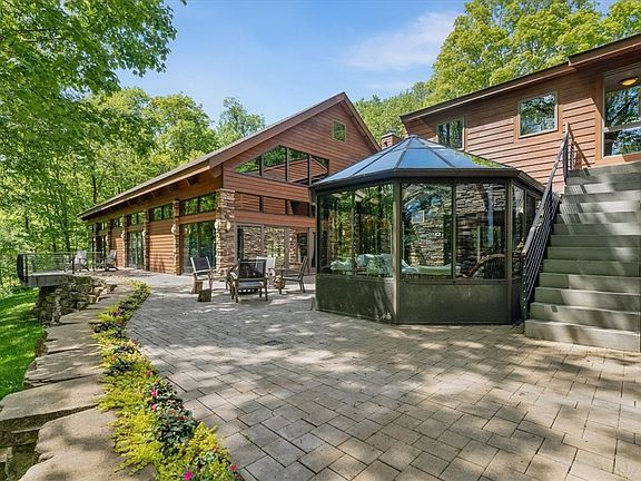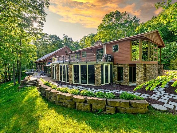 Frank Lloyd Wright inspired lakefront contemporary home brings the outdoors into the walls of the dwelling and resulting in a rustic paradise in the trees. Originally constructed in the mid-1980s as a modest, three-bedroom lake retreat, the home was remodeled in 2010 and was transformed into the sprawling and dramatic 8,500 square foot showpiece that exists today. Immaculately maintained and unyielding attention to detail, this home boasts with the primary suite and art room/office/or bedroom on main floor, and three guest bedrooms on LL. Privately positioned on Indian Lake, the extraordinary lake front residence offers a glass solarium, vaulted ceilings, geothermal heating and cooling system, screened in dining and spa-like amenities. Dive into the dramatic 63-foot indoor swimming pool which spills into a child-safe wading area—ready for your family year-round. Golfing, fishing, boating, skiing, and hiking are all moments away from your private, tranquil Indian Lake home.