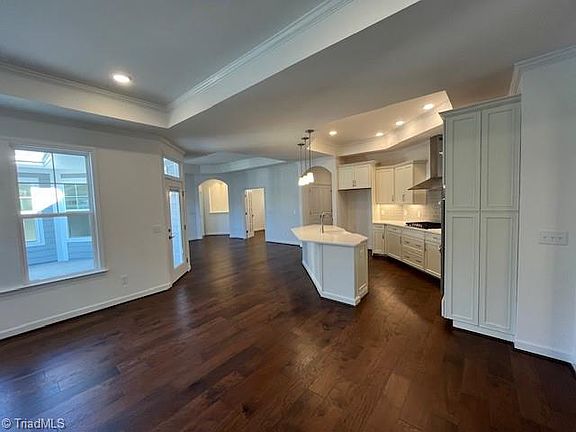 The Portico "Classic" floor plan with extended living space in the living room and keeping rooms! This lovely 2-bedroom home with 2 full bath, plus powder room, has tons of natural light, sun tunnels and many upgrades! The deluxe kitchen features upgraded cabinetry, soft-close hardware, under cab. lighting, quartz countertops and farmhouse sink. The appliance package includes Frigidaire Gallery double-ovens, gas cooktop, dishwasher & disposal. Engineered wood flooring throughout the main living areas, and carpet selected for the bedrooms. The spacious primary bedroom has an attached sitting room, large walk-in closet, and a comfortable bathroom with floor-to-ceiling tiled shower! Large storage room off the kitchen, 2 linen closets, roomy closets in the bedrooms make this home perfect for a comfortable lifestyle. Enjoy the private, fenced courtyard for entertaining! HOA takes care of the yardwork so you can relax & enjoy your new home!