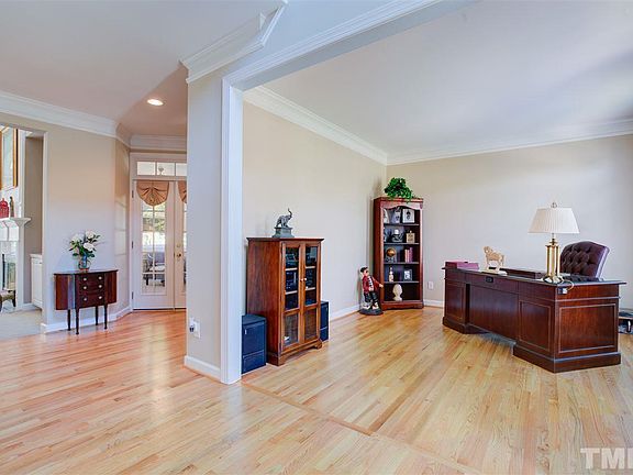 Gleaming newly refinished hardwood floors welcome you to this wonderful Cary home. 4 BR/3.5Ba w a two story Family Room w built-in bookshelves, gas log fireplace, open to Kitchen and Breakfast Nook w views of private, landscaped backyard. Kitchen has granite counter tops, lots of cabinet space and black appliances. Second level has GRACIOUS Master Suite w sitting area, AND Flex space, spa bath w dual vanities, Jacuzzi tub, walk in shower. Three additional Bedrooms with Jack and Jill Bath.