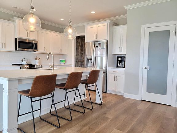 Welcome to this gorgeous, less than 1-year old home in the beautiful Magnolia Reserve community. The perfect location, you're within Surf City limits, while still being a part of Hampstead. Minutes to groceries, restaurants, bars, breweries, beaches, disc golf, an escape room, ice cream, coffee shops, the turtle rescue, boutiques, shoppes, gyms, mini golf, playgrounds and SO much more! You are RIGHT across the Surf City bridge, only minutes to the sandy beaches of Topsail Beach. You can ride your bike (or run if you're ambitious) right to the island. This address even includes year-round FREE parking at any Surf City beach access! Part of the coveted Surf City school district and soon to be connected to the East Coast Greenway, there is also a gorgeous community swimming Pool coming soon, expected to break ground this year. *The pool photo is a picture of the Planned pool, which hasn't been built yet.* Once the pool is complete, you will be able to walk out of the back yard directly across the street to the pool! Less than 5 minutes to Highway 17, this is the perfect location for Beach town living with a quick and easy commute to the city of Wilmington. The house itself is less than a year old with gorgeous white Quartz counter tops, white slow-close cabinets, LVP flooring, stainless steel appliances, beautiful upgrades and finishes throughout, and huge open floor plan with sunroom and formal dining room which has been converted to a downstairs office. The office has been upgraded to include lockable custom barn doors, which can slide open if you prefer to use the space as a formal dining area. There is an Aquasana whole-house water filtration system installed which includes three different filters, a UV filter and salt-free water conditioner for clean, safe drinking water throughout the home. Upstairs are four bedrooms including the owner's suite with the over-sized owner's bath. The white marble tile throughout the bathroom carries into the huge tiled shower. There are two separate vanities so you can each have your own bathroom space. The walk-in closet is huge and includes an additional room off of the closet with a keypad lock to store valuables! Two more bedrooms share a full bathroom, while the 4th bedroom has its own private ensuite bathroom with walk-in shower. The backyard is fully sodded and fenced with a large wooden play-set and complete with a lighted pergola, fire-pit and patio furniture. There is a dog run area connected to the garage side-door to keep the sodded grass around the play-set fresh and green (with no stepping in an accident!) Enjoy your garage home-gym! The PRX fold-down gym system in the garage will stay with the house. The house is located at the end of a cul-de-sac and next to a large pond filled with fish. Bright NC sunsets are quite a show from the front porch, where you can sip sweet tea and watch the sunset while the kids play in the cul-de-sac or catch their first fish. Video tour available upon request, availability is flexible, but July 1 is preferred. Laundry room does have a washer & dryer that can stay if tenant prefers. Water, Sewer & Trash will be covered by the owner. Power, Cable & Internet is the responsibility of the tenant. Pets (cats, dogs) are allowed, and we currently do not have any breed restrictions, but dogs must not have ANY bite history, or show aggression towards people, children or other dogs. Tenants must sign an affadivit confirming. There is a limit of 3 total pets. There is a one-time pet fee of $100 per pet.