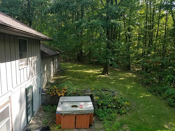 Very private raised ranch set on two wooded acres of land with a stream. Home has 4 bedrooms, 2 baths and a big family room with coal stove. Property has an extra building that has many possibilities plus a hot tub. More land is available.