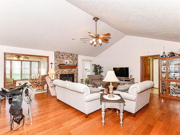 3BR/2BA Ranch custom built by Bryan Ragan on 1.29 Acre lot. Step in from the covered front porch. Great Rm w/Hardwood floor & GL FP, Kitchen w/ample cabinets, breakfast bar & breakfast Rm, Sunroom w/access to patio & backyard, Laundry Rm, Master suite w/Dbl sinks & Wlk-in closet. 2-car attached garage has access to the walk-up 725 sq ft attic w/electricity wired, just needs drywall to finish up & make into useable space! 40x24 Detached 4 car garage/workshop; finished, heated w/attached covered patio & 12x12 storage rm. 16x12 mini barn w/electric panel for future hook up. Move-in and call home!